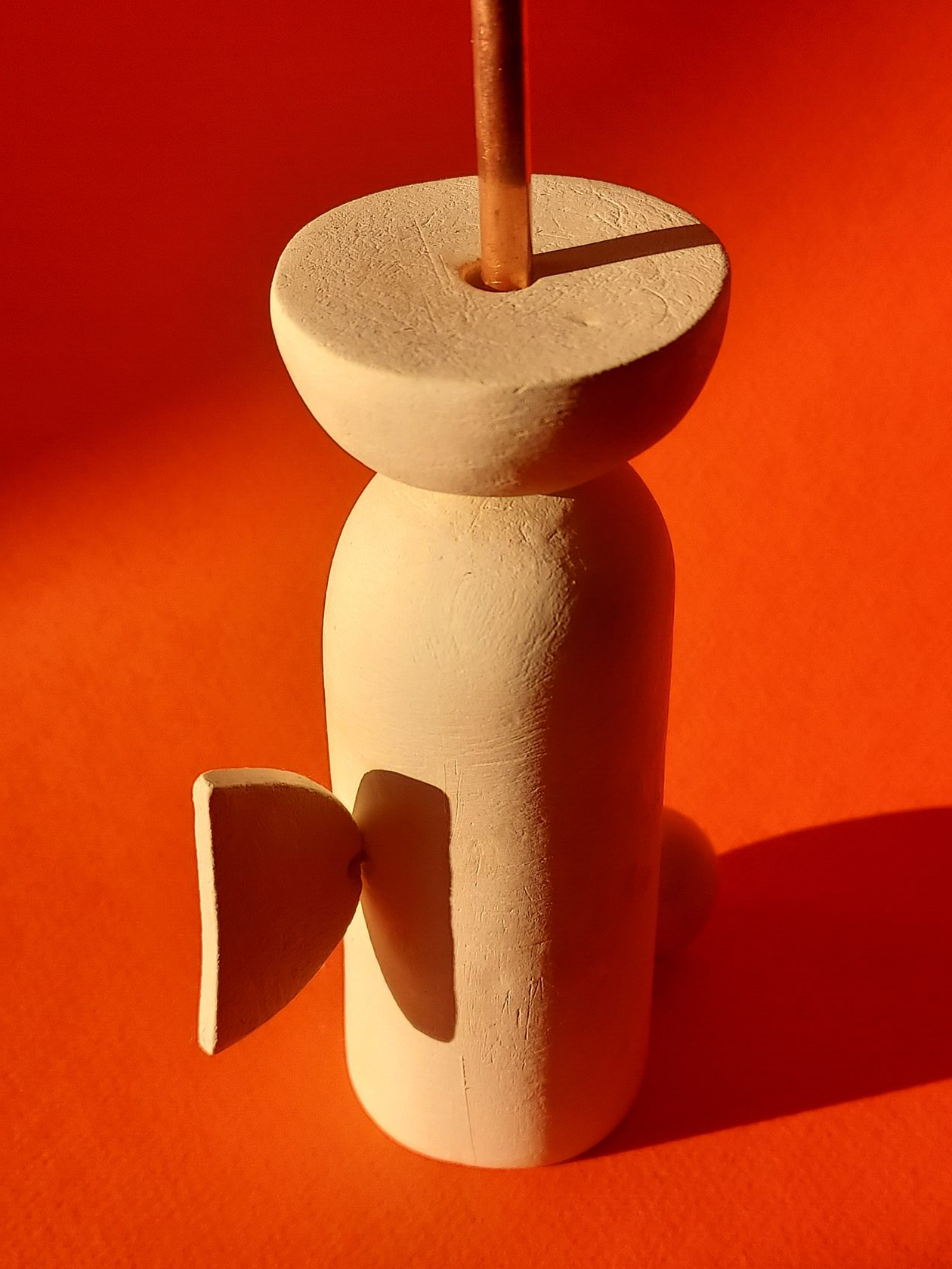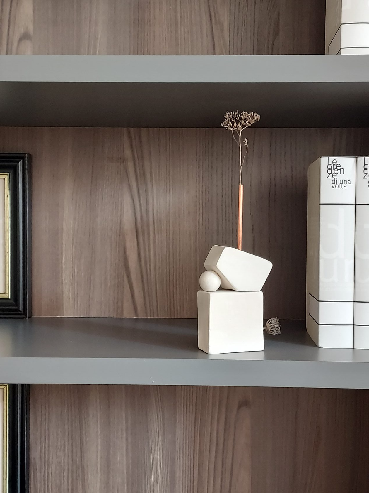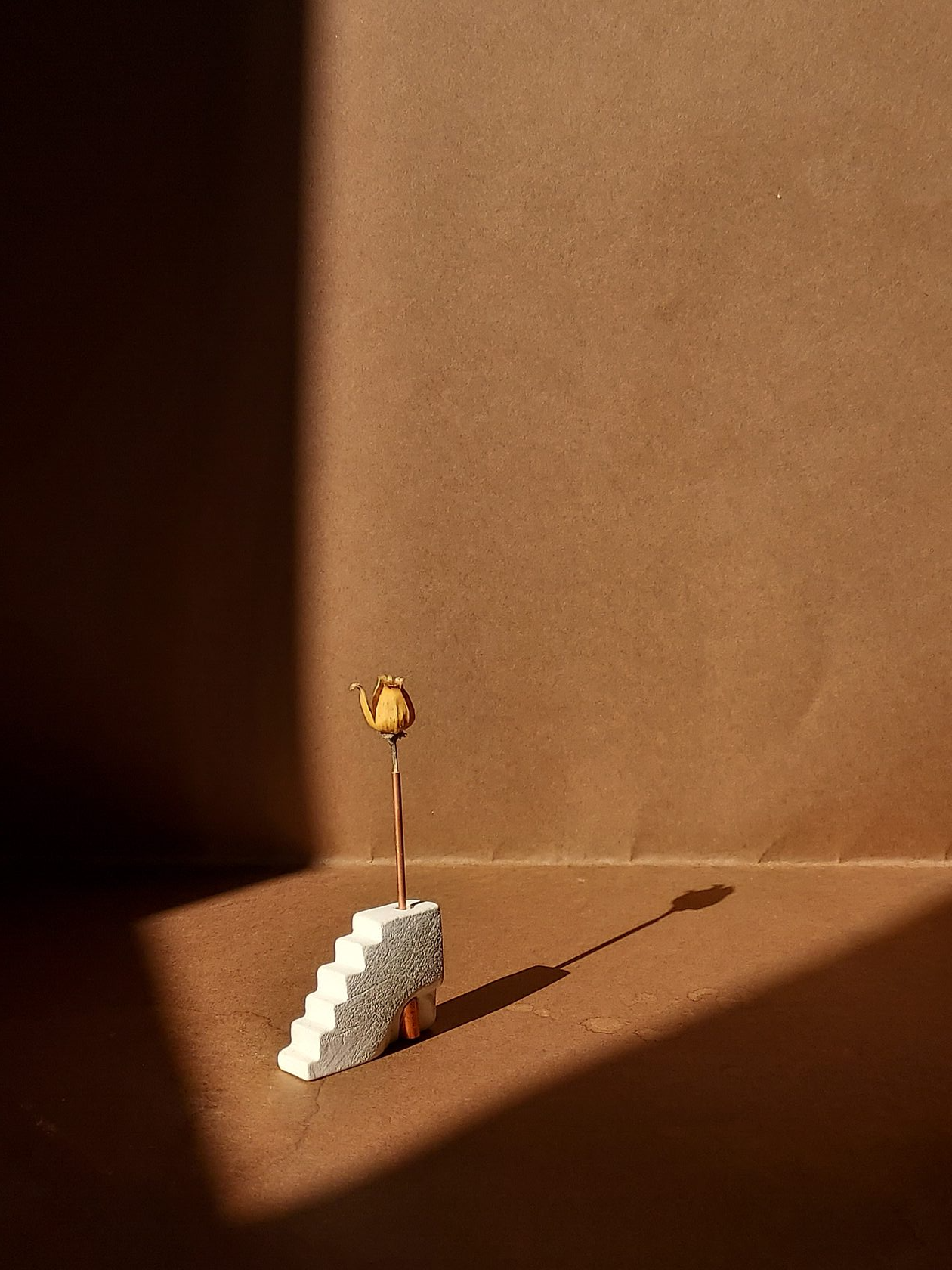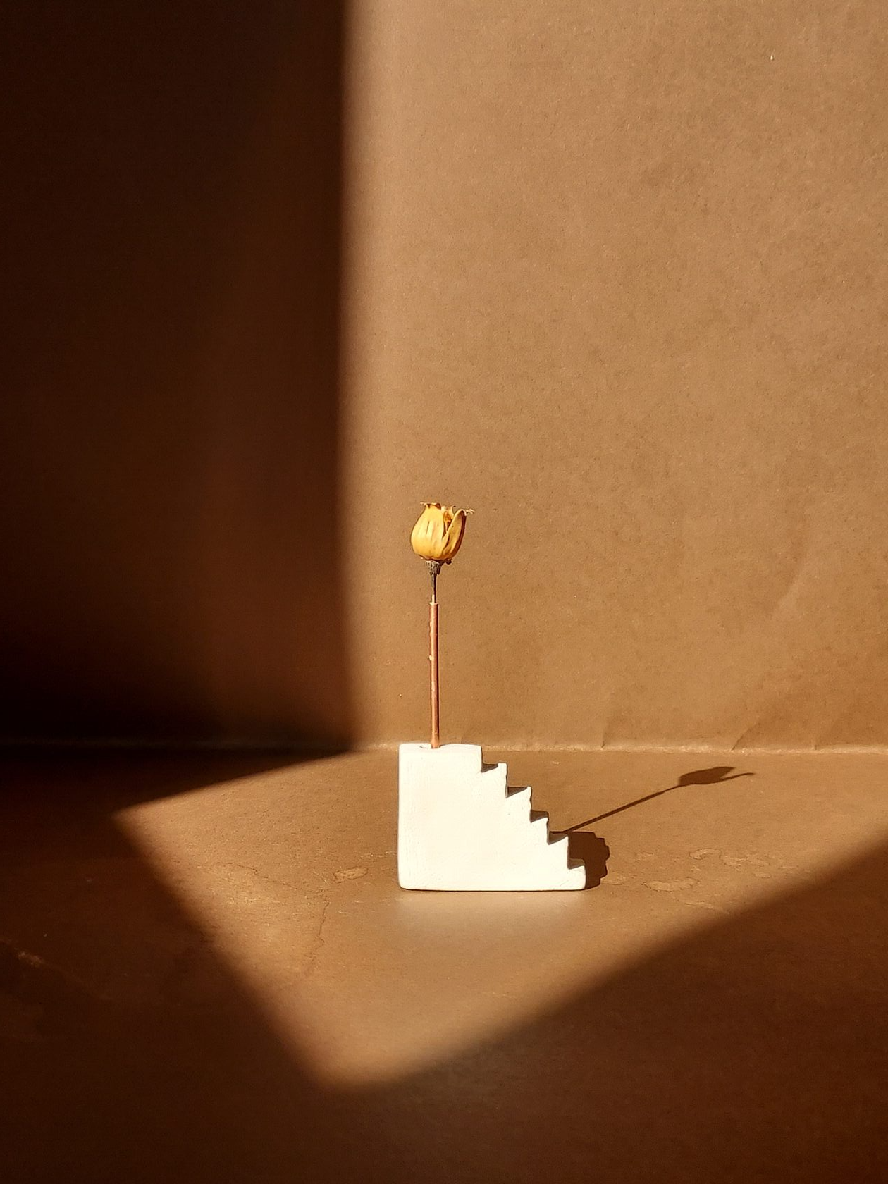 The staircase with a semicircle and a sphere at the top; the sculpture is completed with the brass tube to insert a candle or a dried flower.