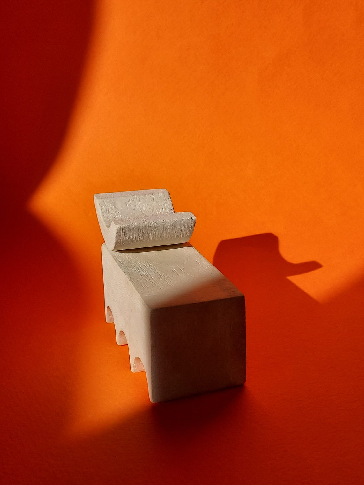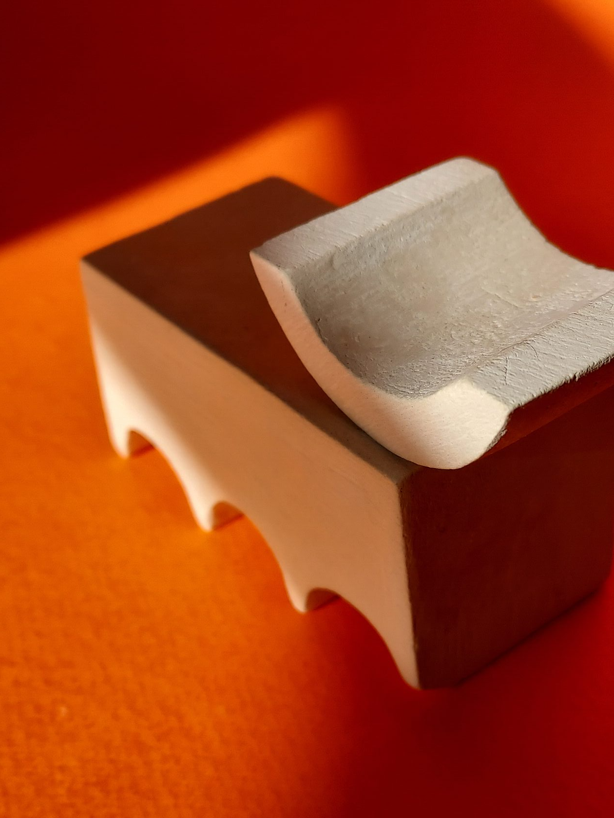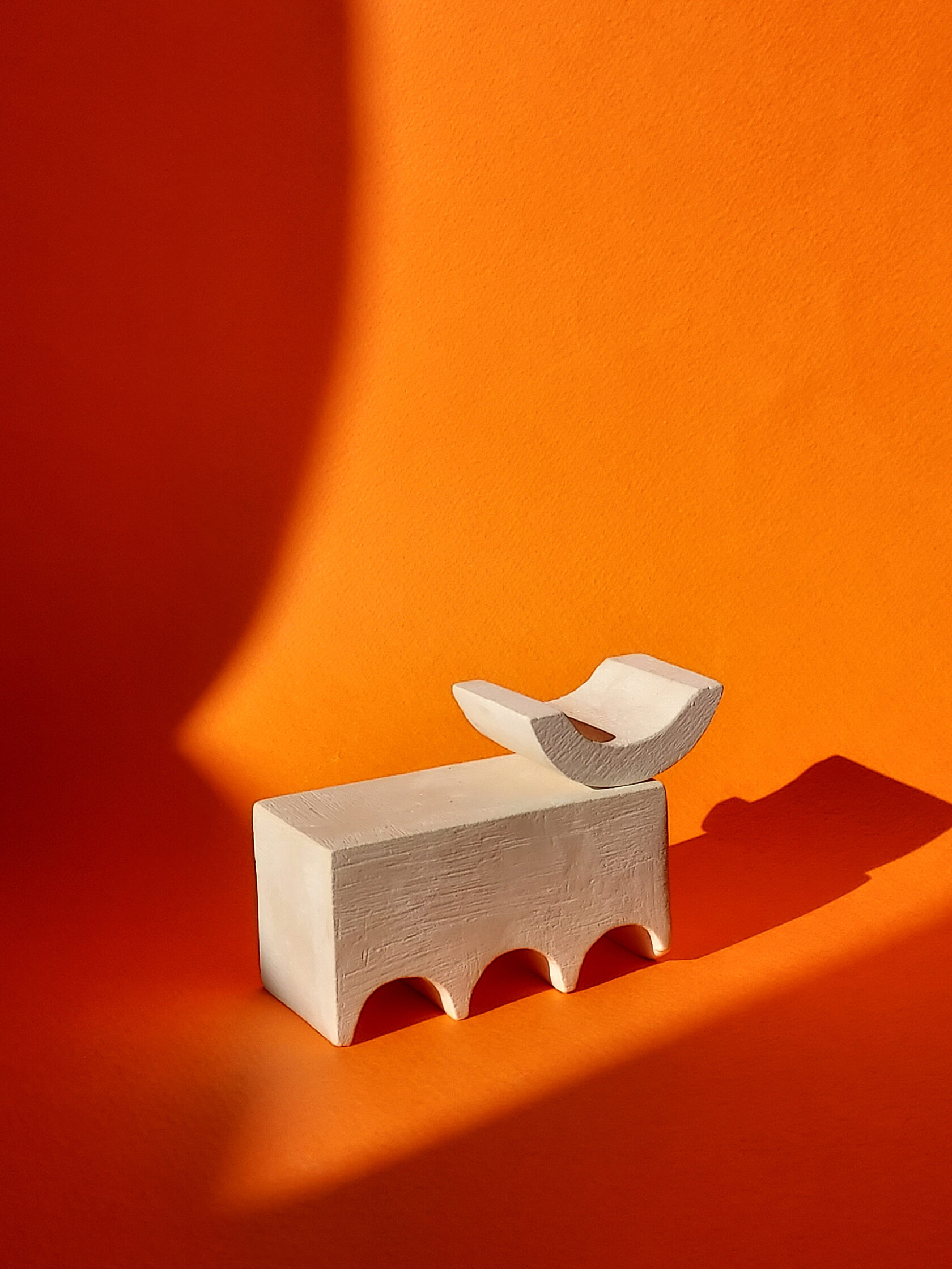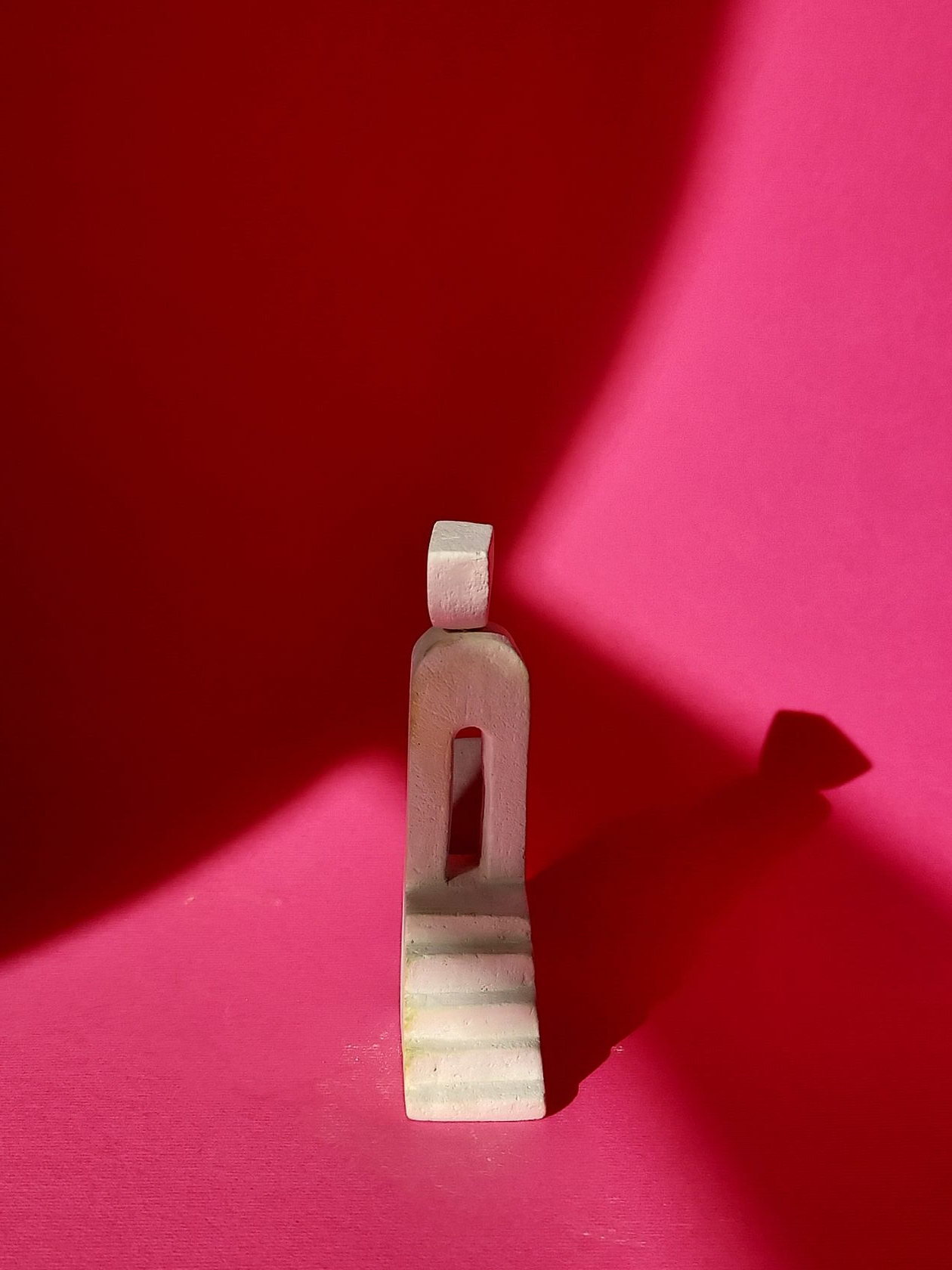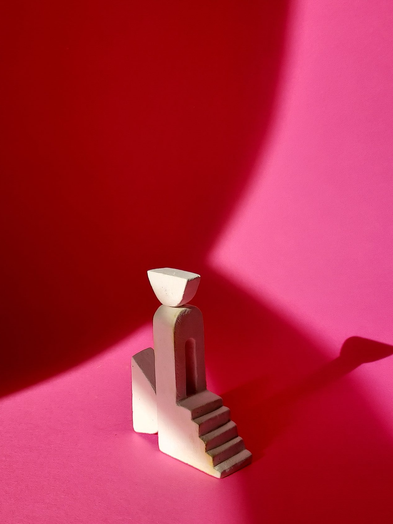 The staircase with a semicircle and a sphere at the top; the sculpture is completed with the brass tube to insert a candle or a dried flower.