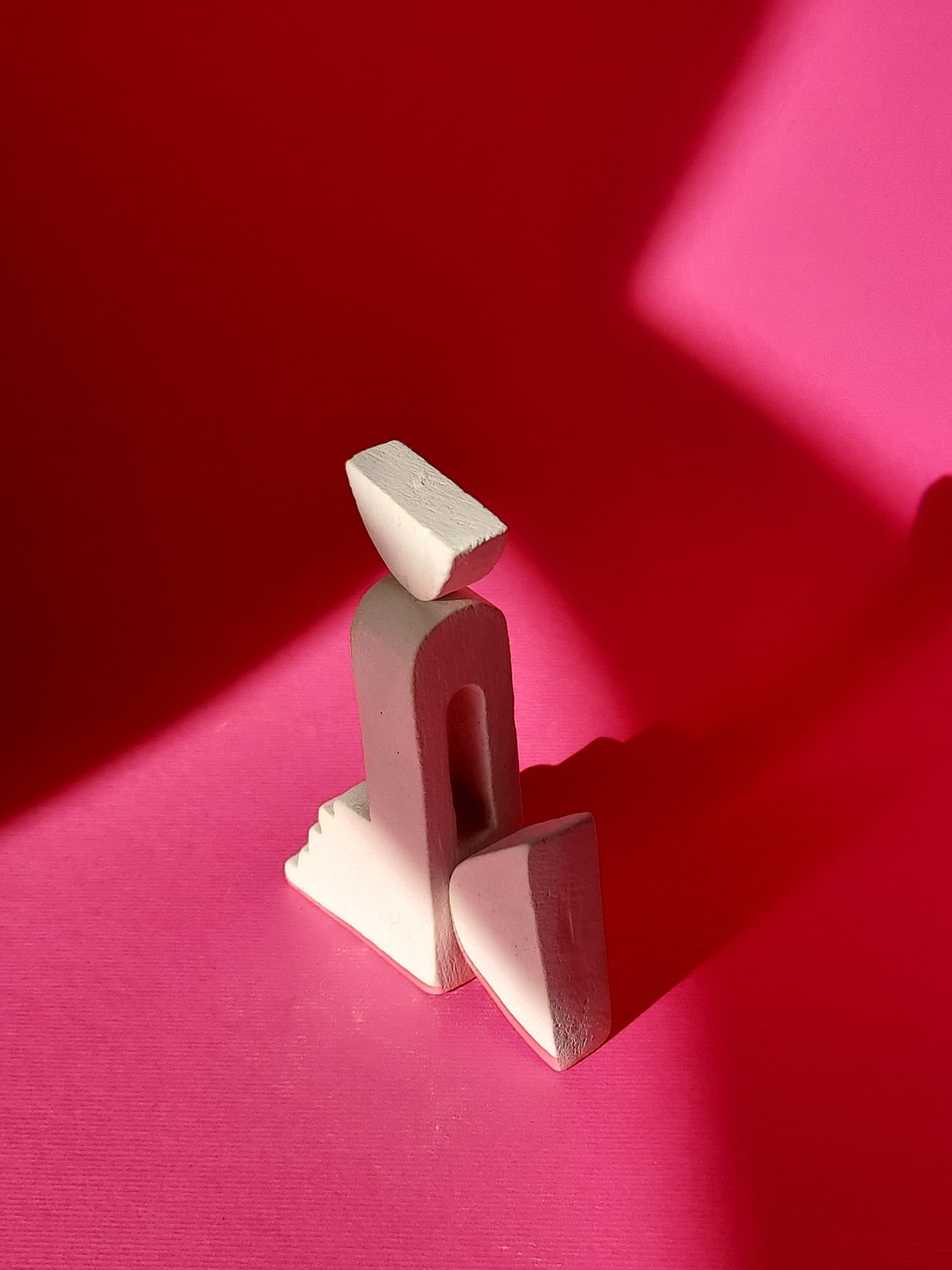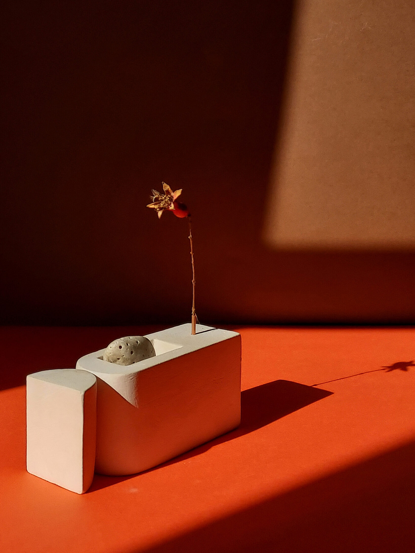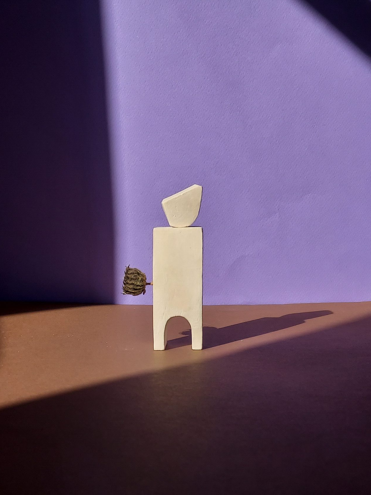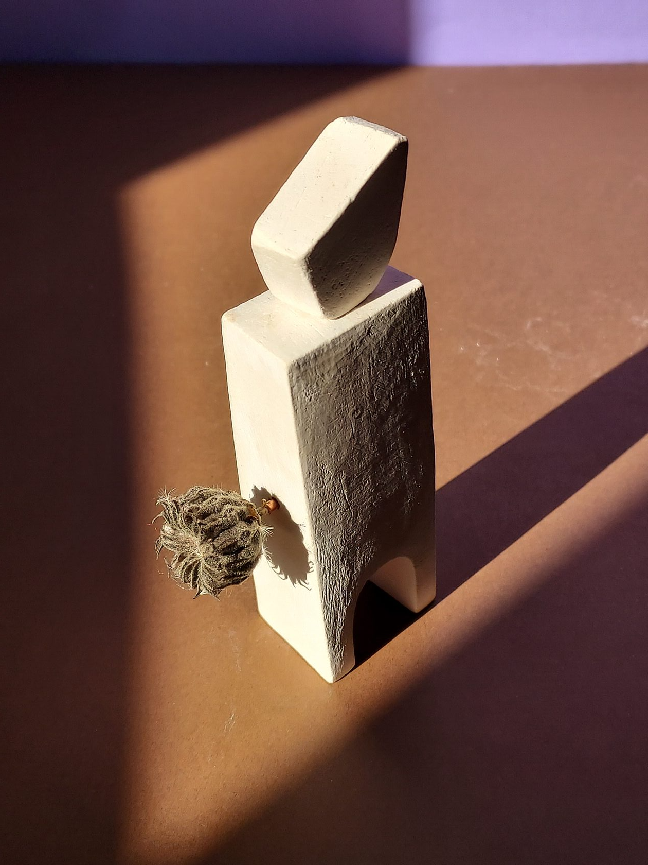 These handmade sculptures - a fusion of reality and fantasy - are made of shapes, balancing on each other. The ingenious combination of forms creates a subtle feeling of a miracle. Dried flowers and twigs give the image an unexpectedly touching accent of a fragile but solid equilibrium.