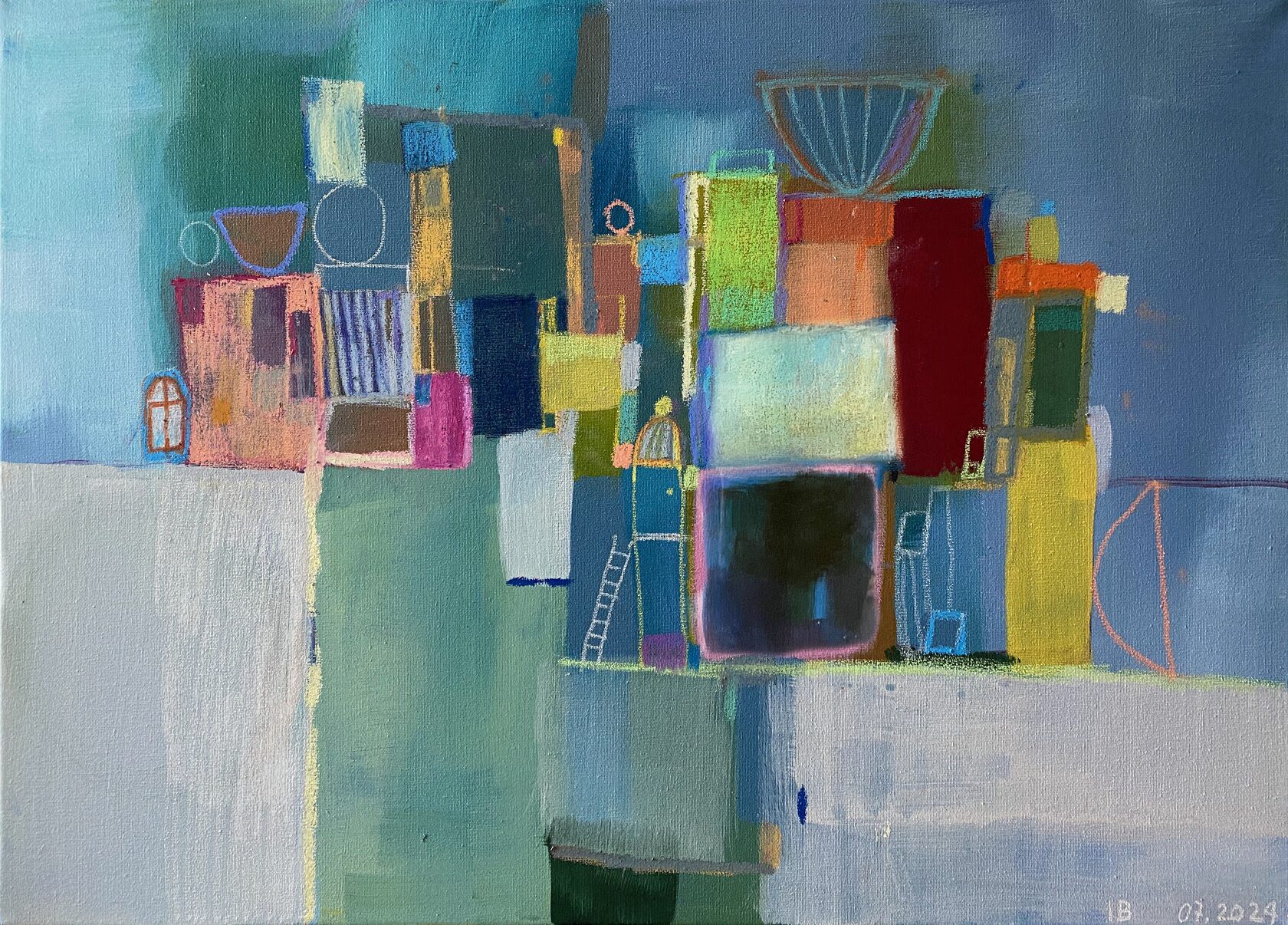 Acrilic, pastel, oil pastel, colored pencils on canvas